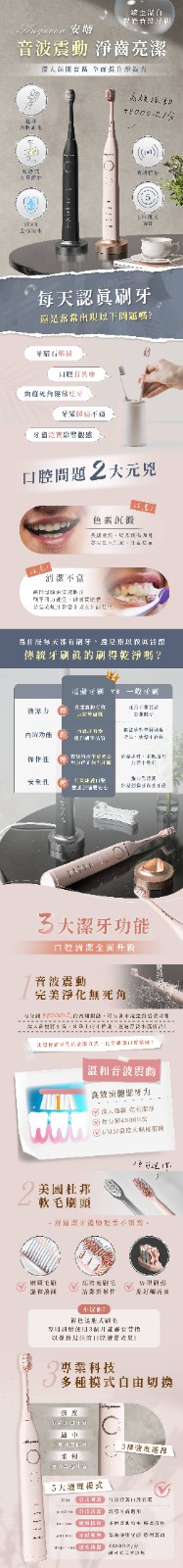 15分鐘前微笑從齒開始!Anqueen安晴臻至潔白智能音波電動牙刷AQ-B101 - 粉色款